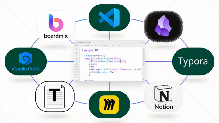 它的跨平台能力也相当出色。写好的Mermaid代码能在VS Code、Obsidian、Typora、boardmix、Miro、Notion等几十个工具里无缝使用。程序员在IDE里画的架构图,产品经理能直接在项目管理工具里看到,设计师也能往设计文档里引用,大家用的是同一套图表语言,沟通自然就顺畅了。