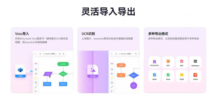 导出格式:boardmix和DrawIO支持最丰富,包括矢量格式和多种文档格式